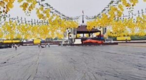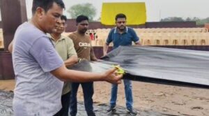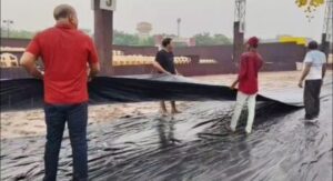 વડોદરા : સવારથી વરસાદને પગલે ગરબાના મેદાનને ‘રેઇન કોટ’ પહેરાવાયો