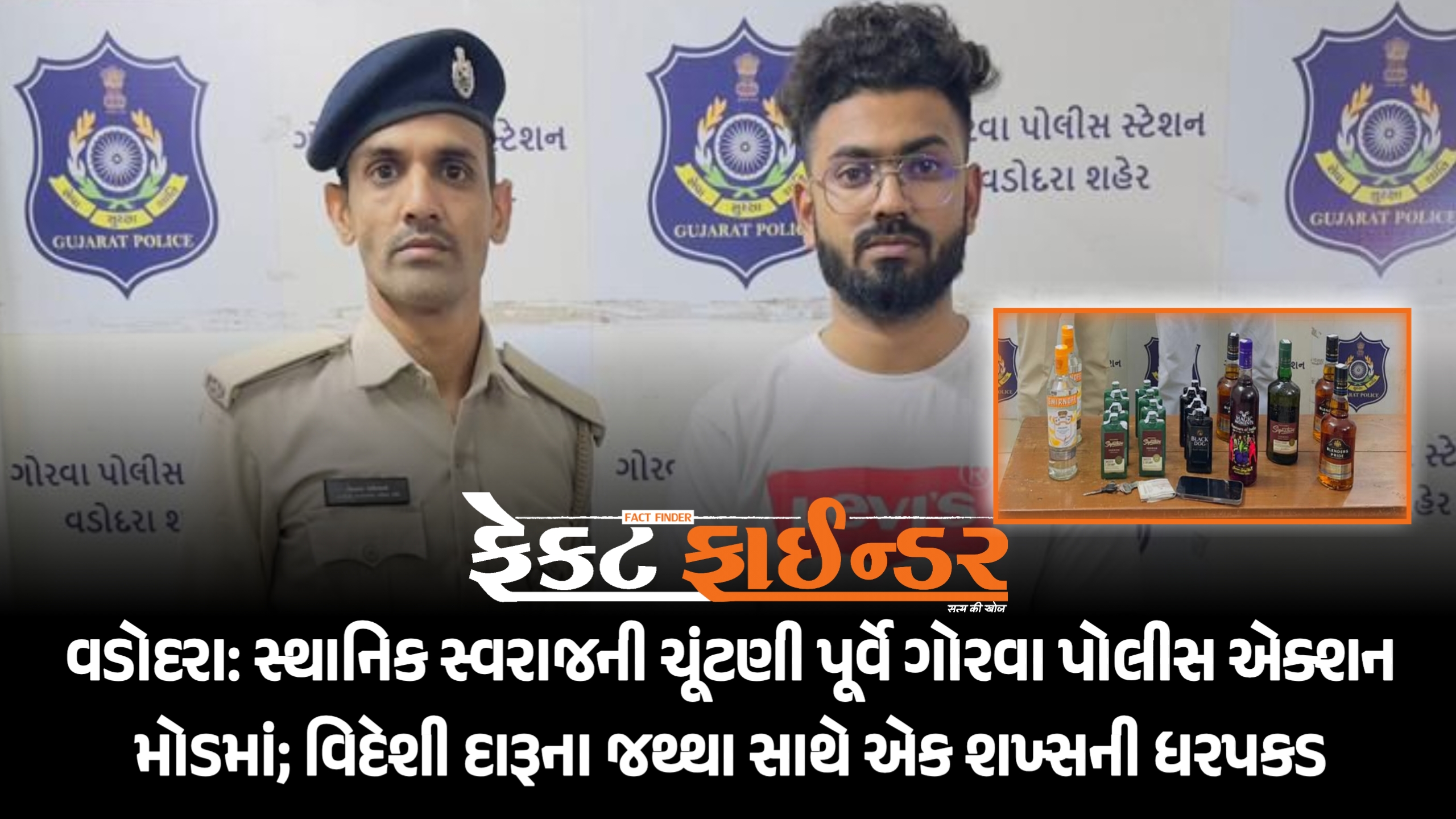 વડોદરા: સ્થાનિક સ્વરાજની ચૂંટણી પૂર્વે ગોરવા પોલીસ એક્શન મોડમાં; વિદેશી દારૂના જથ્થા સાથે એક શખ્સની ધરપકડ