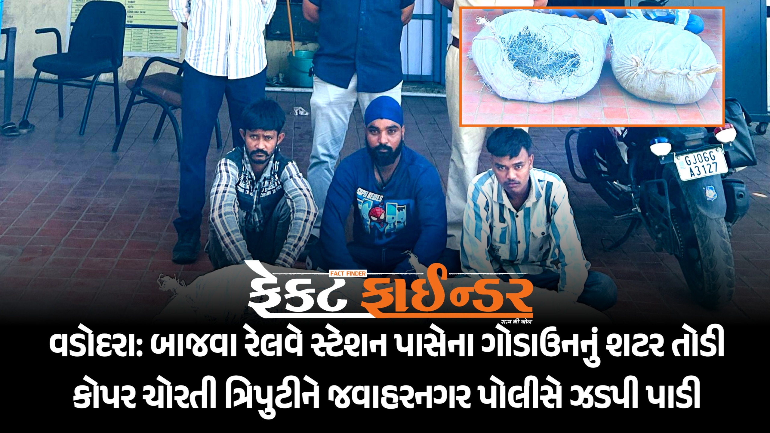 વડોદરા: બાજવા રેલવે સ્ટેશન પાસેના ગોડાઉનનું શટર તોડી કોપર ચોરતી ત્રિપુટીને જવાહરનગર પોલીસે ઝડપી પાડી
