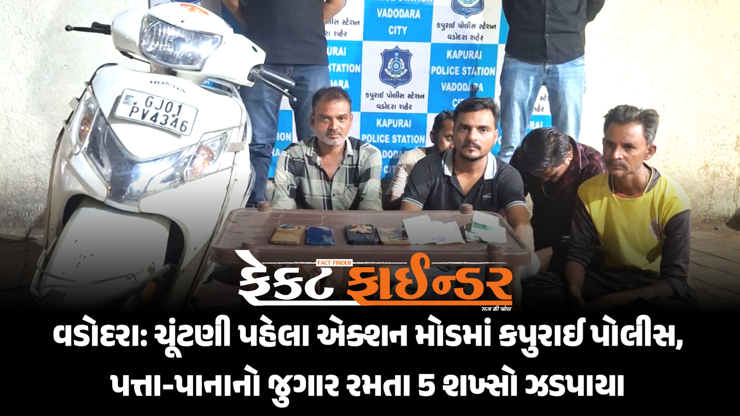 વડોદરા: ચૂંટણી પહેલા એક્શન મોડમાં કપુરાઈ પોલીસ, પત્તા-પાનાનો જુગાર રમતા 5 શખ્સો ઝડપાયા