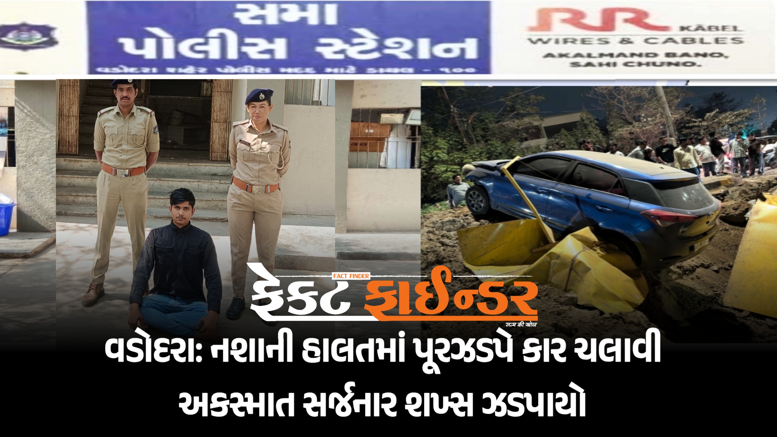 વડોદરા: નશાની હાલતમાં પૂરઝડપે કાર ચલાવી અકસ્માત સર્જનાર શખ્સ ઝડપાયો
