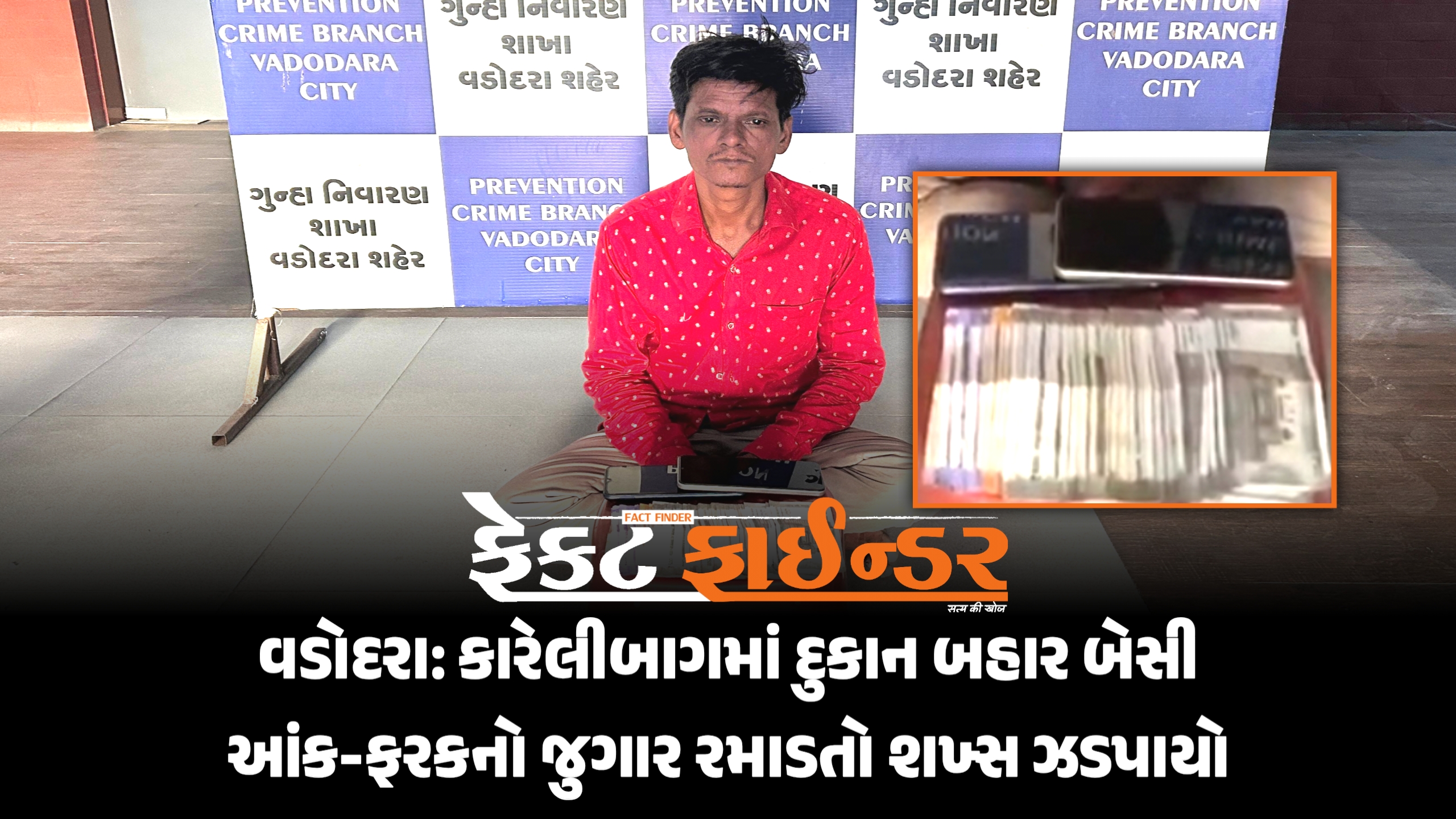 • ડભોઈ રોડનો રામકિશન કહાર લાલ શર્ટ પહેરી આંકડાનો જુગાર રમાડતા રંગેહાથ પકડાયો.
