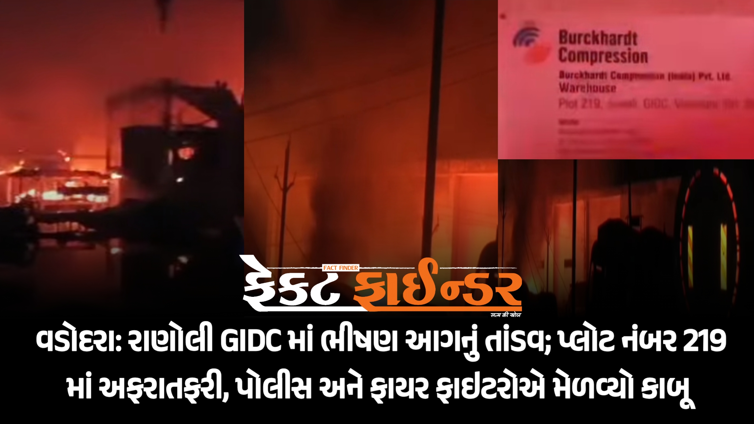 વડોદરા: રાણોલી GIDC માં ભીષણ આગનું તાંડવ; પ્લોટ નંબર 219 માં અફરાતફરી, પોલીસ અને ફાયર ફાઇટરોએ મેળવ્યો કાબૂ