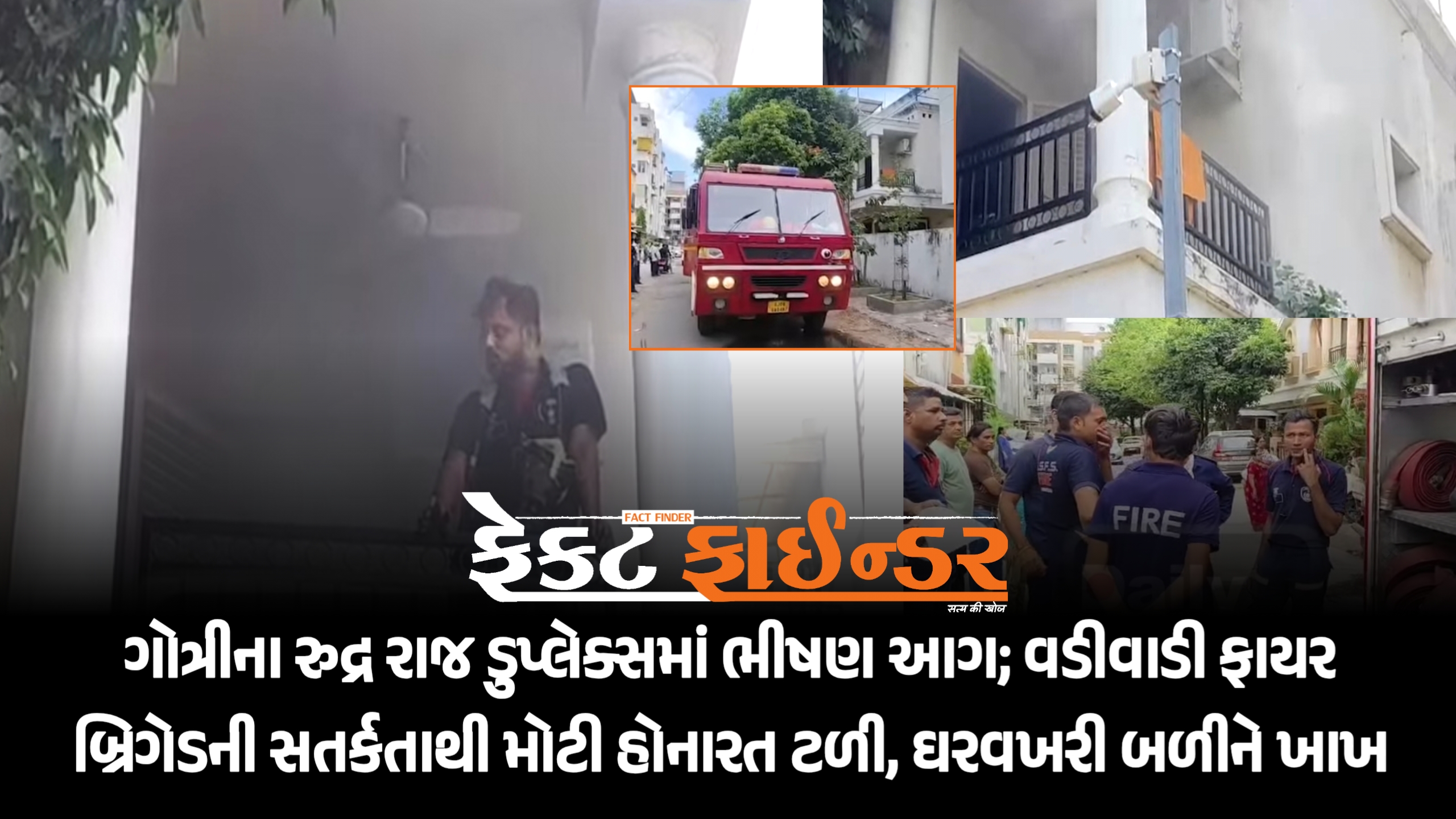 • ગોત્રીમાં અફરાતફરી: રુદ્ર રાજ ડુપ્લેક્સના એક બંધ મકાનમાં અચાનક આગ ફાટી નીકળતા રહીશોમાં ફફડાટ.