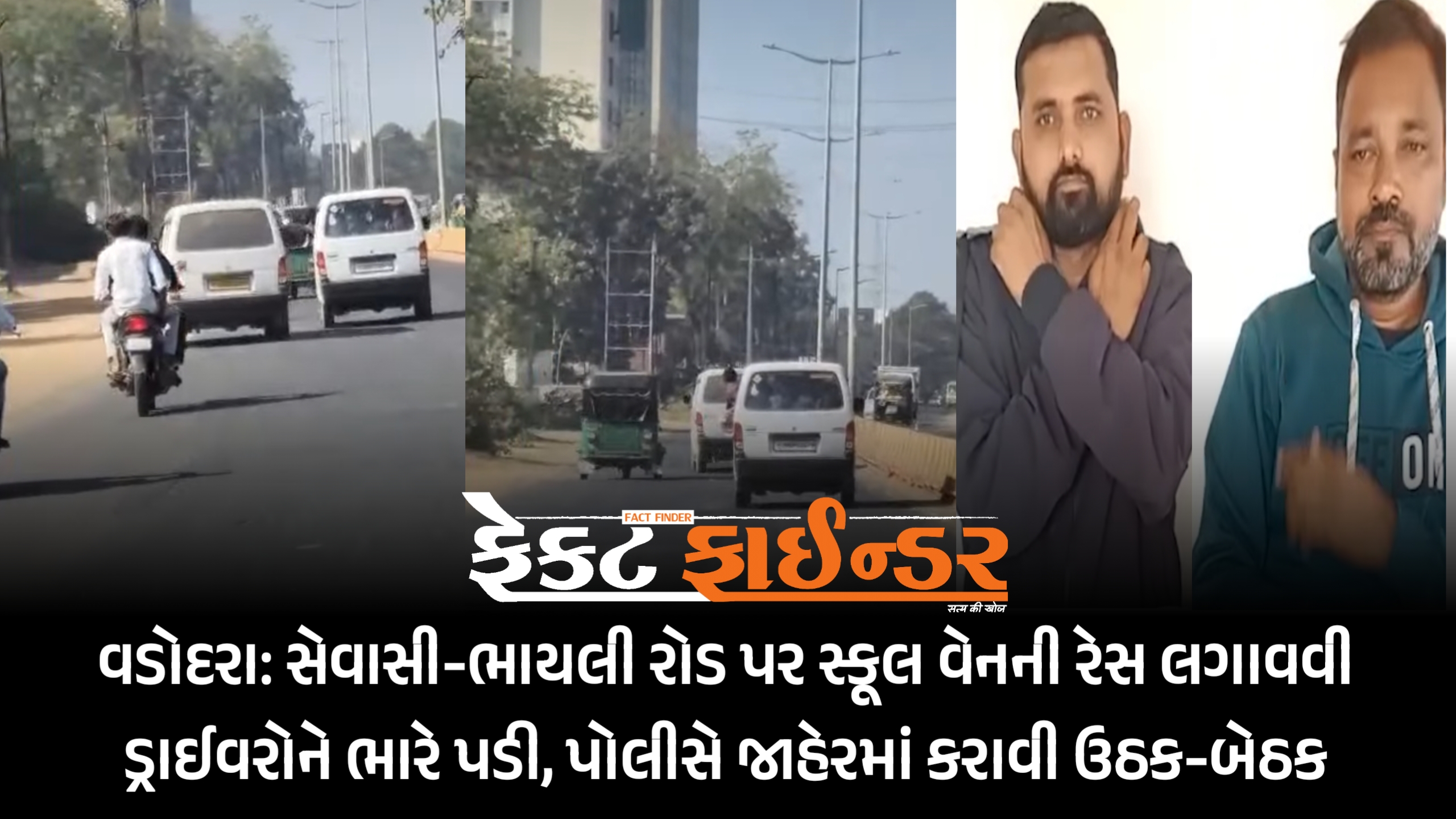 વડોદરા: સેવાસી-ભાયલી રોડ પર સ્કૂલ વેનની રેસ લગાવવી ડ્રાઈવરોને ભારે પડી, પોલીસે જાહેરમાં કરાવી ઉઠક-બેઠક