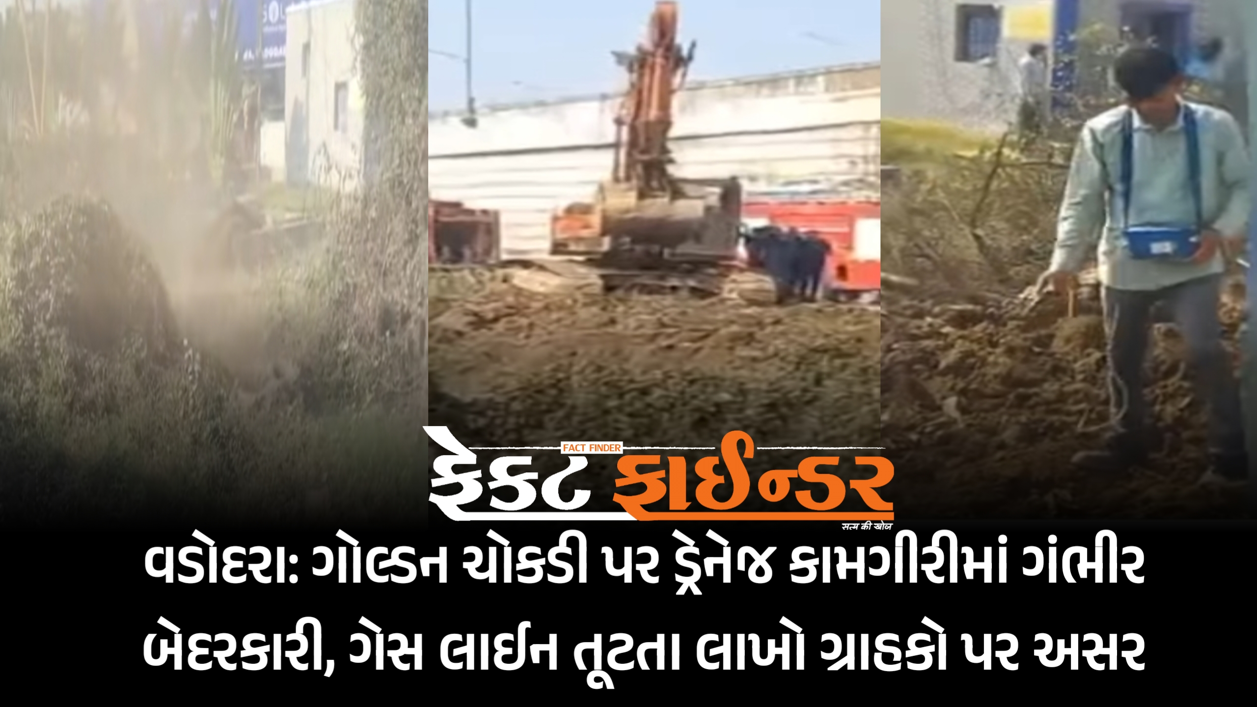 વડોદરા: ગોલ્ડન ચોકડી પર ડ્રેનેજ કામગીરીમાં ગંભીર બેદરકારી, ગેસ લાઈન તૂટતા લાખો ગ્રાહકો પર અસર