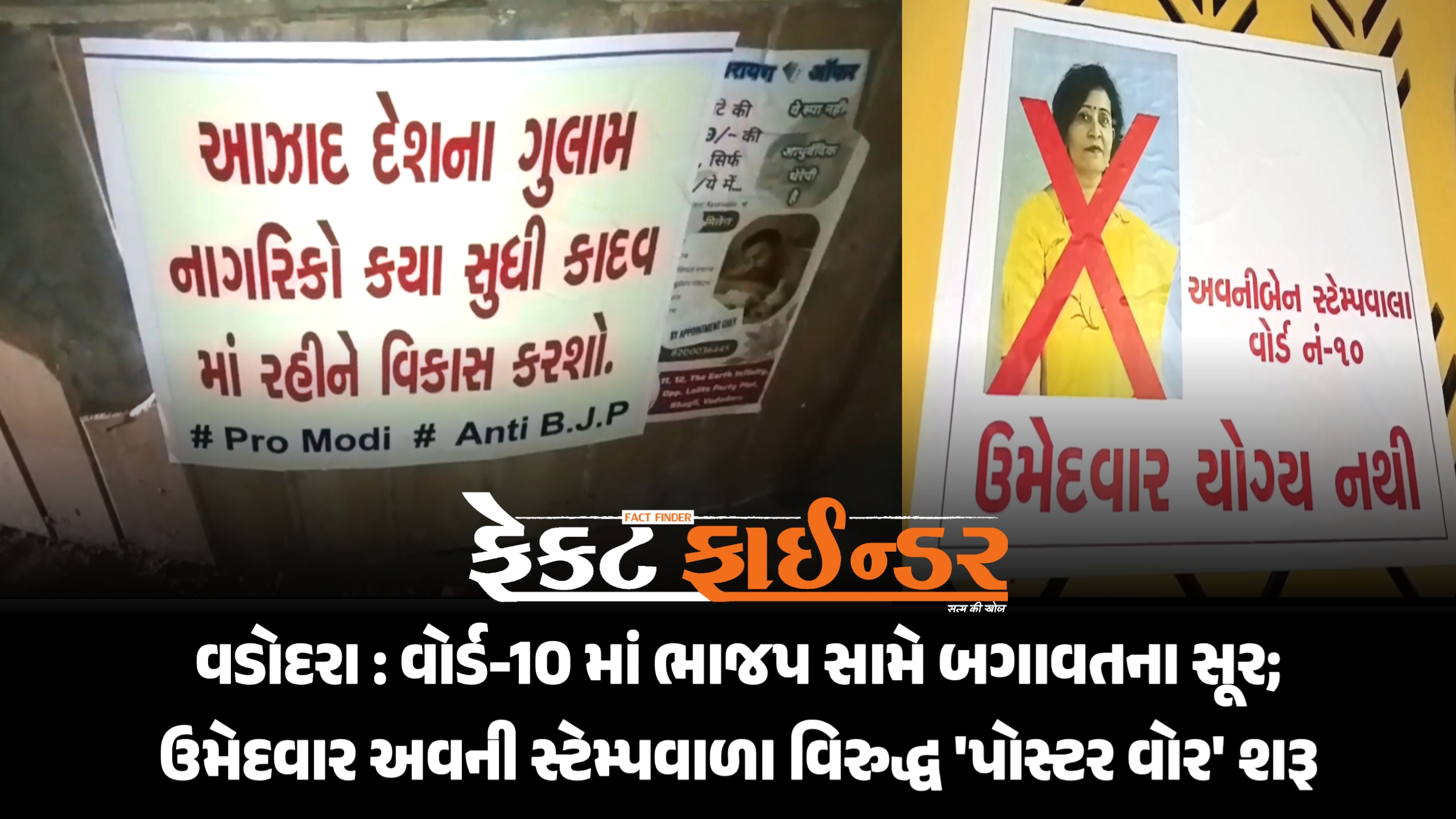વડોદરા : વોર્ડ-10 માં ભાજપ સામે બગાવતના સૂર; ઉમેદવાર અવની સ્ટેમ્પવાળા વિરુદ્ધ ‘પોસ્ટર વોર’ શરૂ