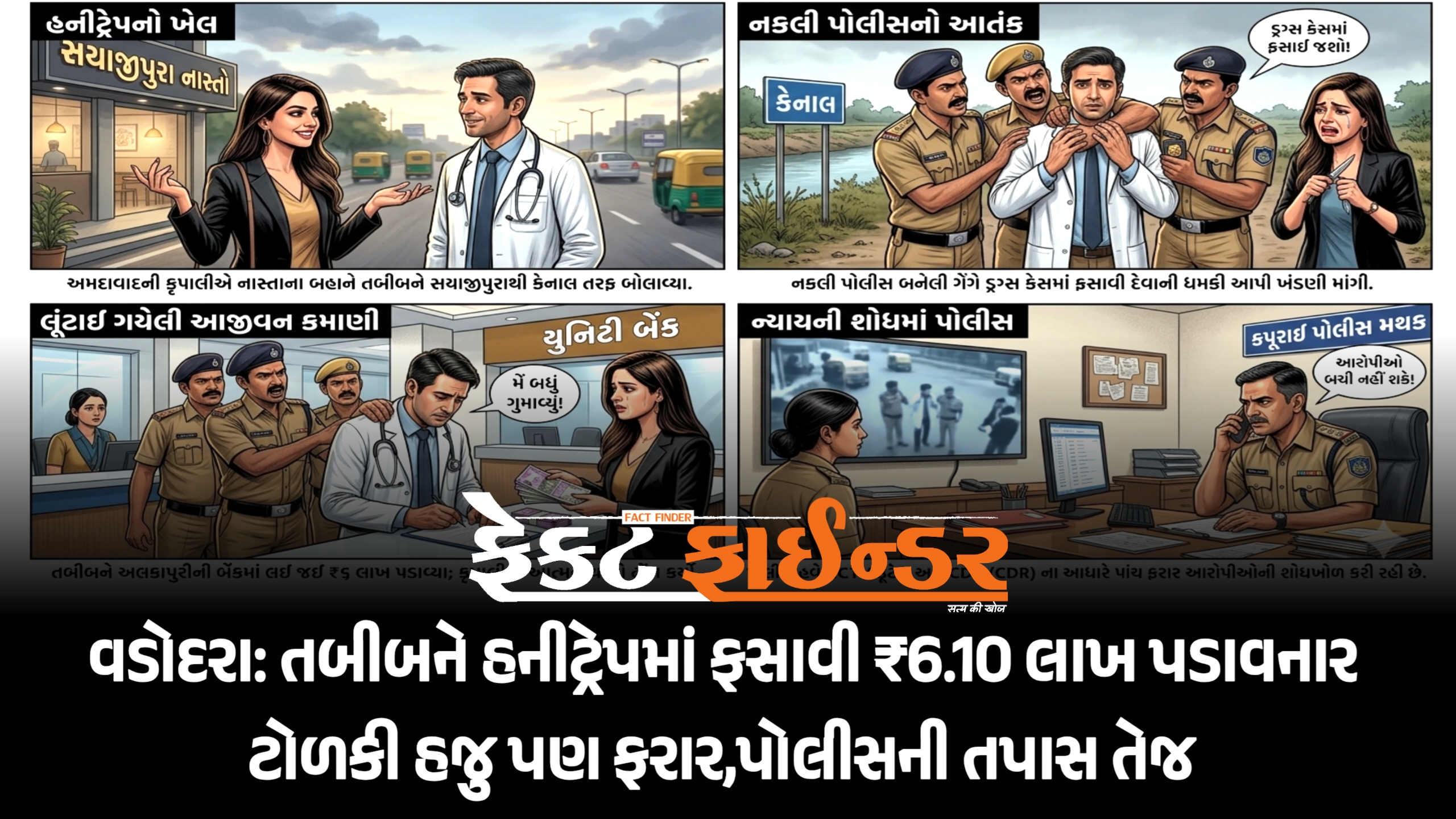 વડોદરા: તબીબને હનીટ્રેપમાં ફસાવી ₹6.10 લાખ પડાવનાર ટોળકી હજુ પણ ફરાર,પોલીસની તપાસ તેજ