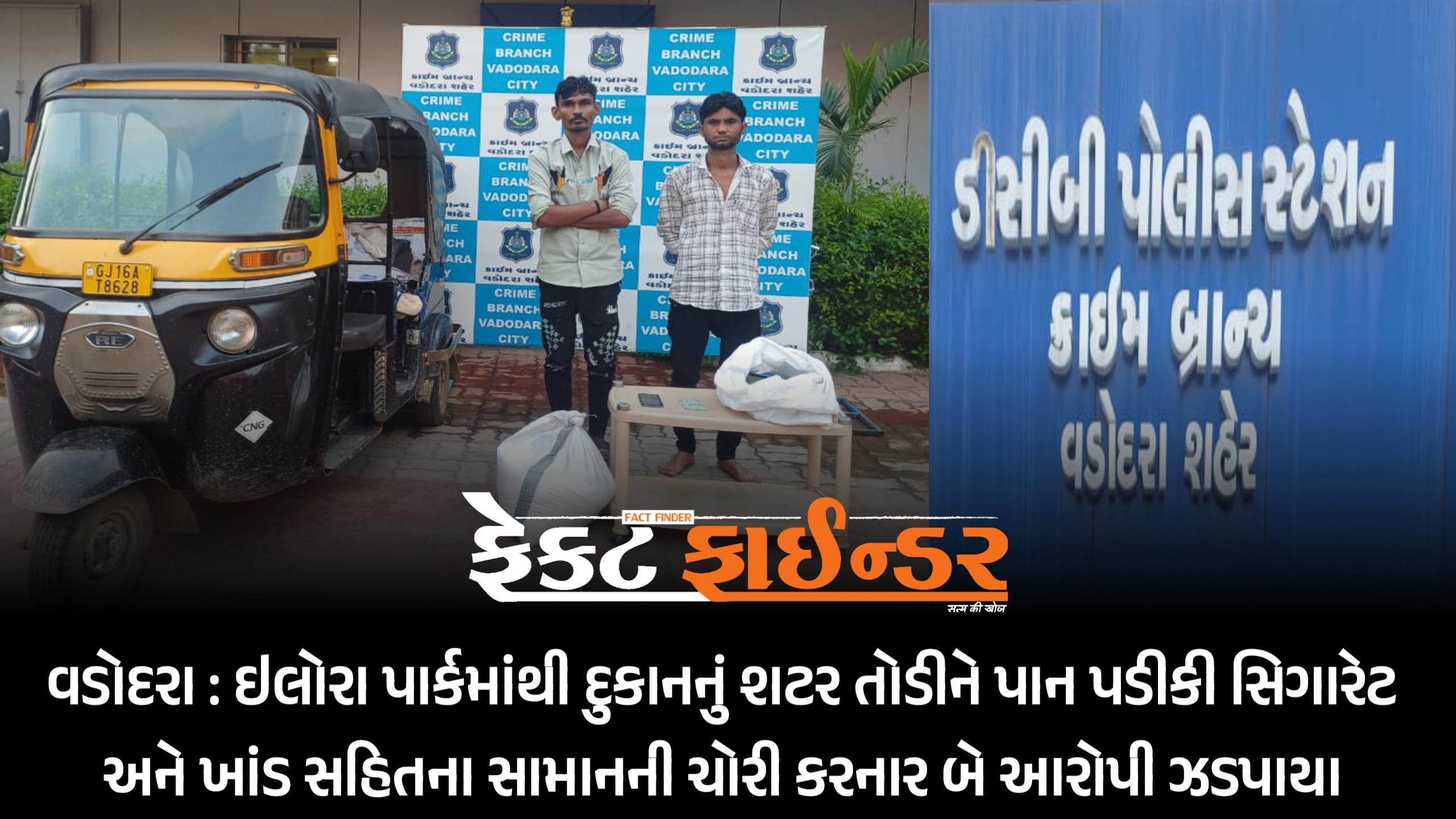 વડોદરા : ઇલોરા પાર્કમાંથી દુકાનનું શટર તોડીને પાન પડીકી સિગારેટ અને ખાંડ સહિતના સામાનની ચોરી કરનાર બે આરોપી ઝડપાયા