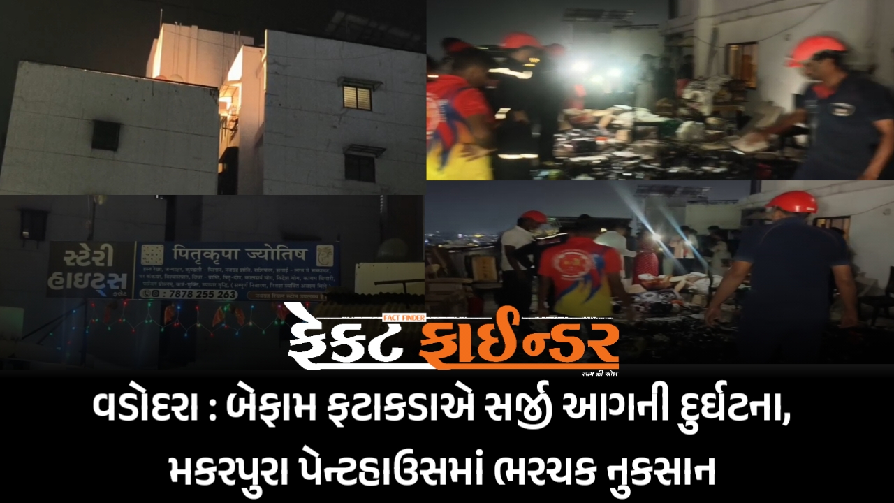 વડોદરા : બેફામ ફટાકડાએ સર્જી આગની દુર્ઘટના, મકરપુરા પેન્ટહાઉસમાં ભરચક નુકસાન