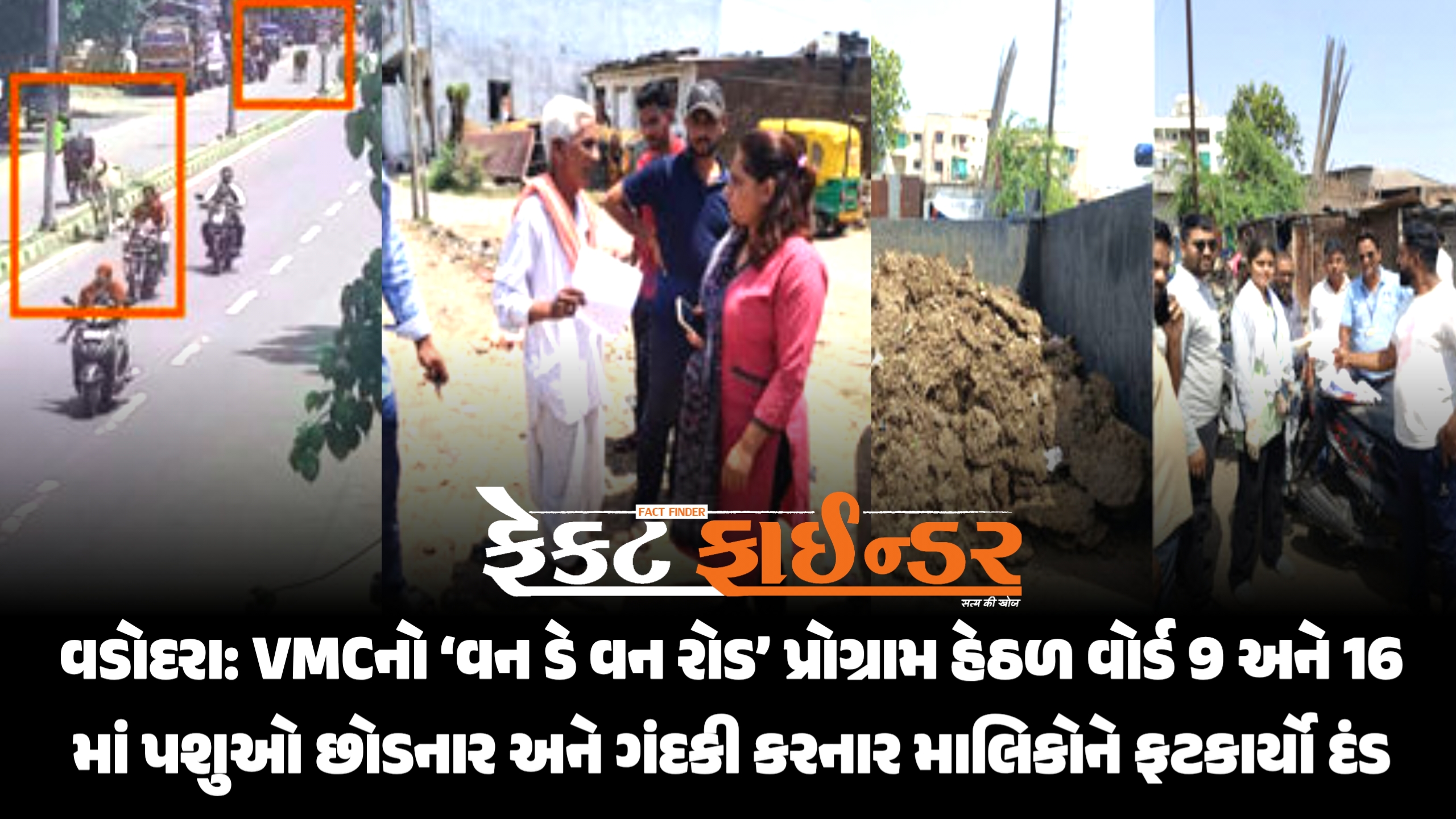 વડોદરા: VMCનો ‘વન ડે વન રોડ’ પ્રોગ્રામ હેઠળ વોર્ડ 9 અને 16 માં પશુઓ છોડનાર અને ગંદકી કરનાર માલિકોને ફટકાર્યો દંડ