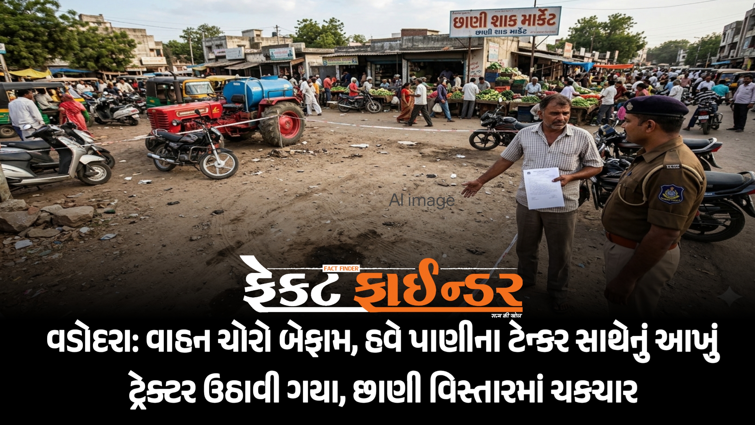 વડોદરા: વાહન ચોરો બેફામ, હવે પાણીના ટેન્કર સાથેનું આખું ટ્રેક્ટર ઉઠાવી ગયા, છાણી વિસ્તારમાં ચકચાર