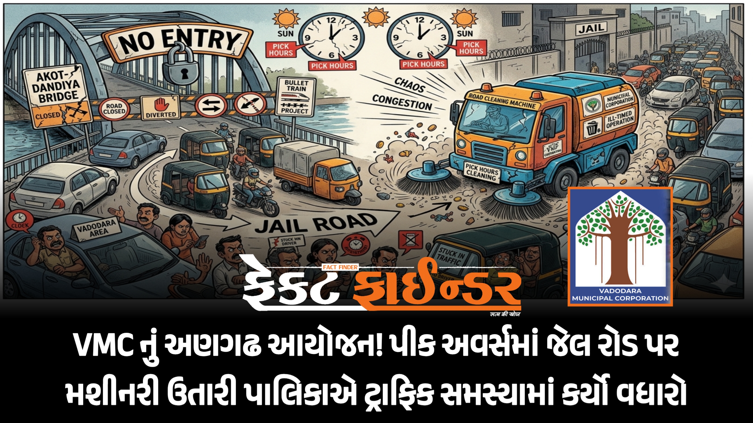 VMC નું અણગઢ આયોજન! પીક અવર્સમાં જેલ રોડ પર મશીનરી ઉતારી પાલિકાએ ટ્રાફિક સમસ્યામાં કર્યો વધારો