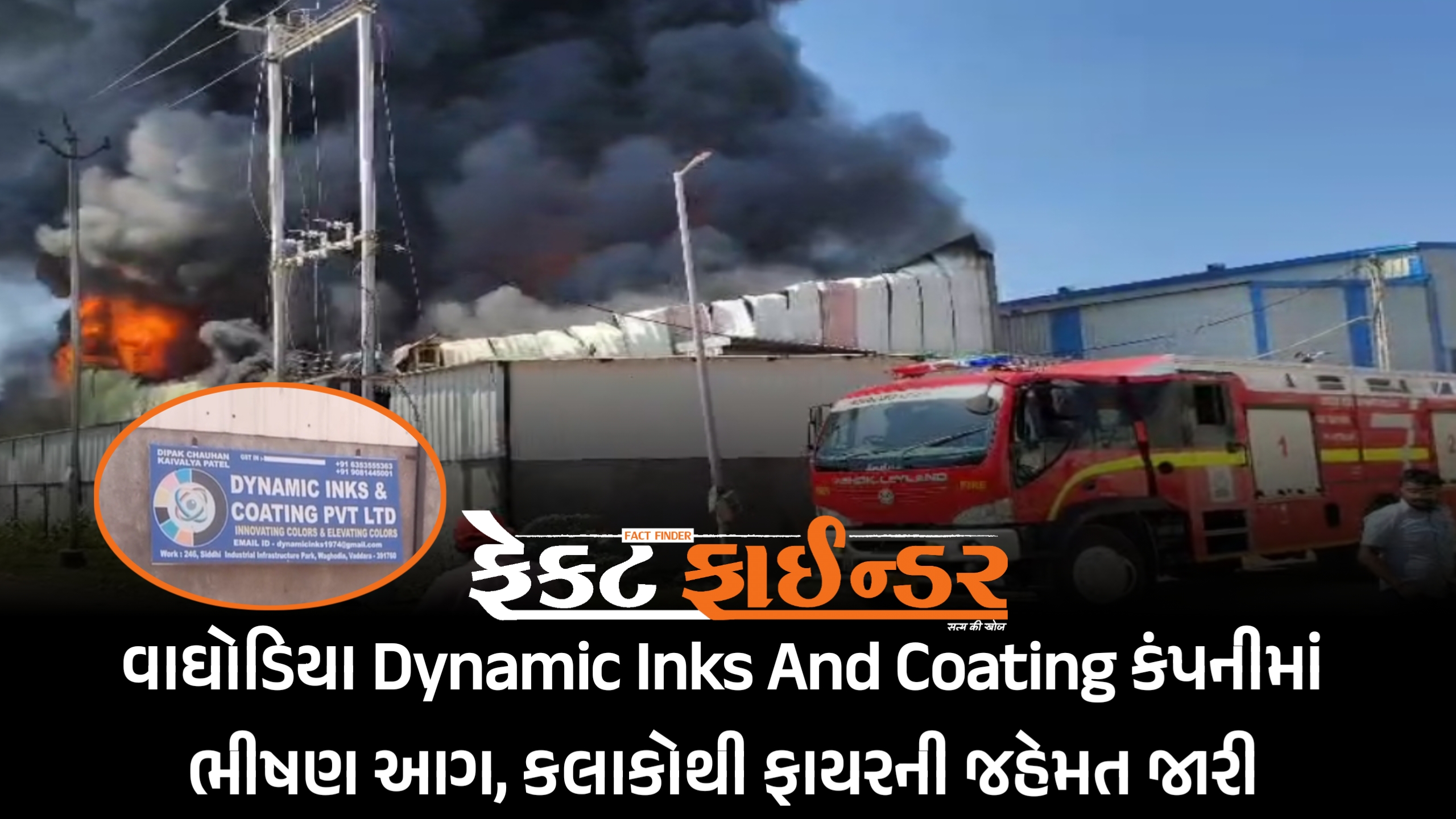 વાઘોડિયા Dynamic Inks And Coating કંપનીમાં ભીષણ આગ, કલાકોથી ફાયરની જહેમત જારી