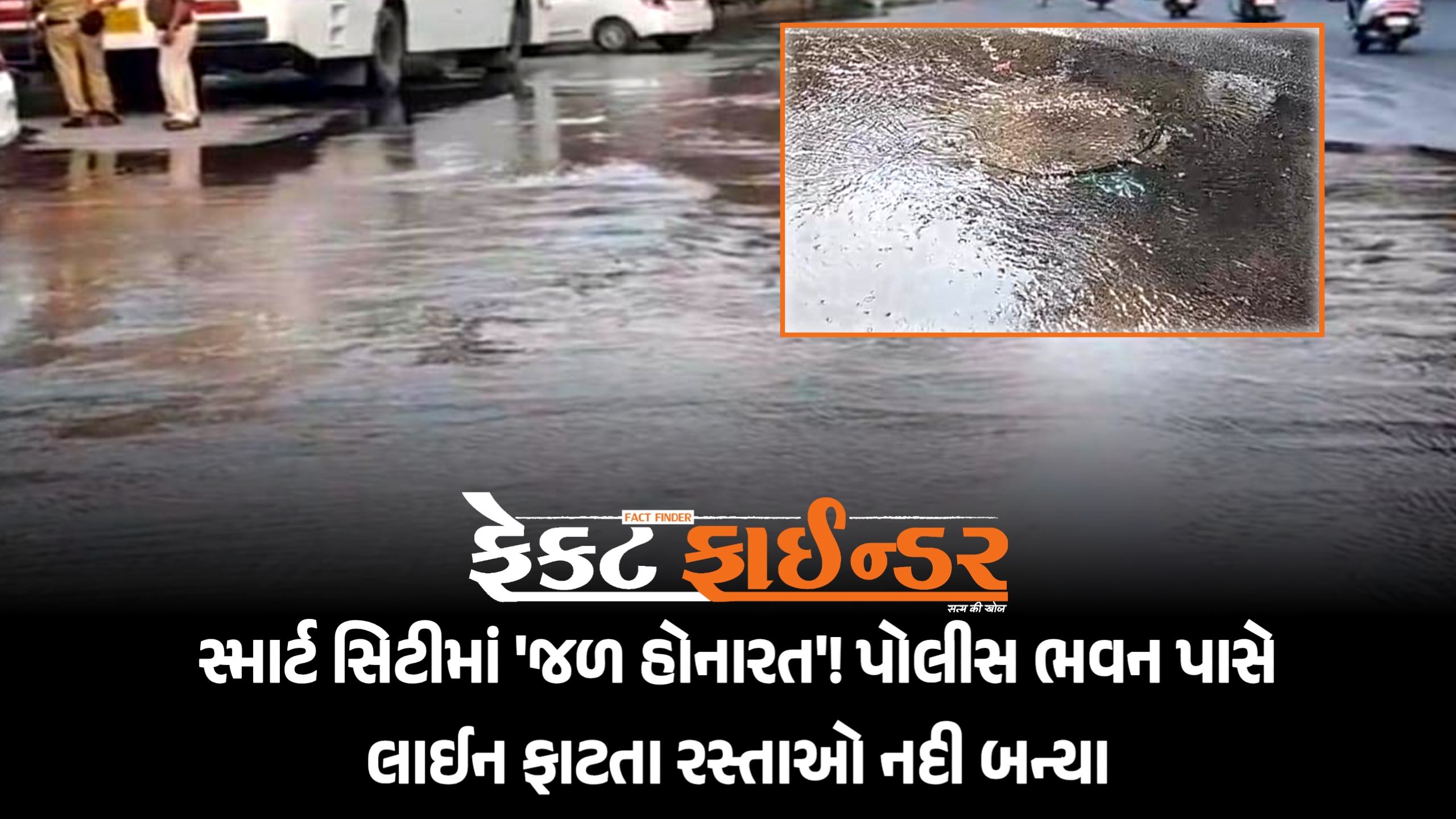 સ્માર્ટ સિટીમાં ‘જળ હોનારત’! પોલીસ ભવન પાસે લાઈન ફાટતા રસ્તાઓ નદી બન્યા