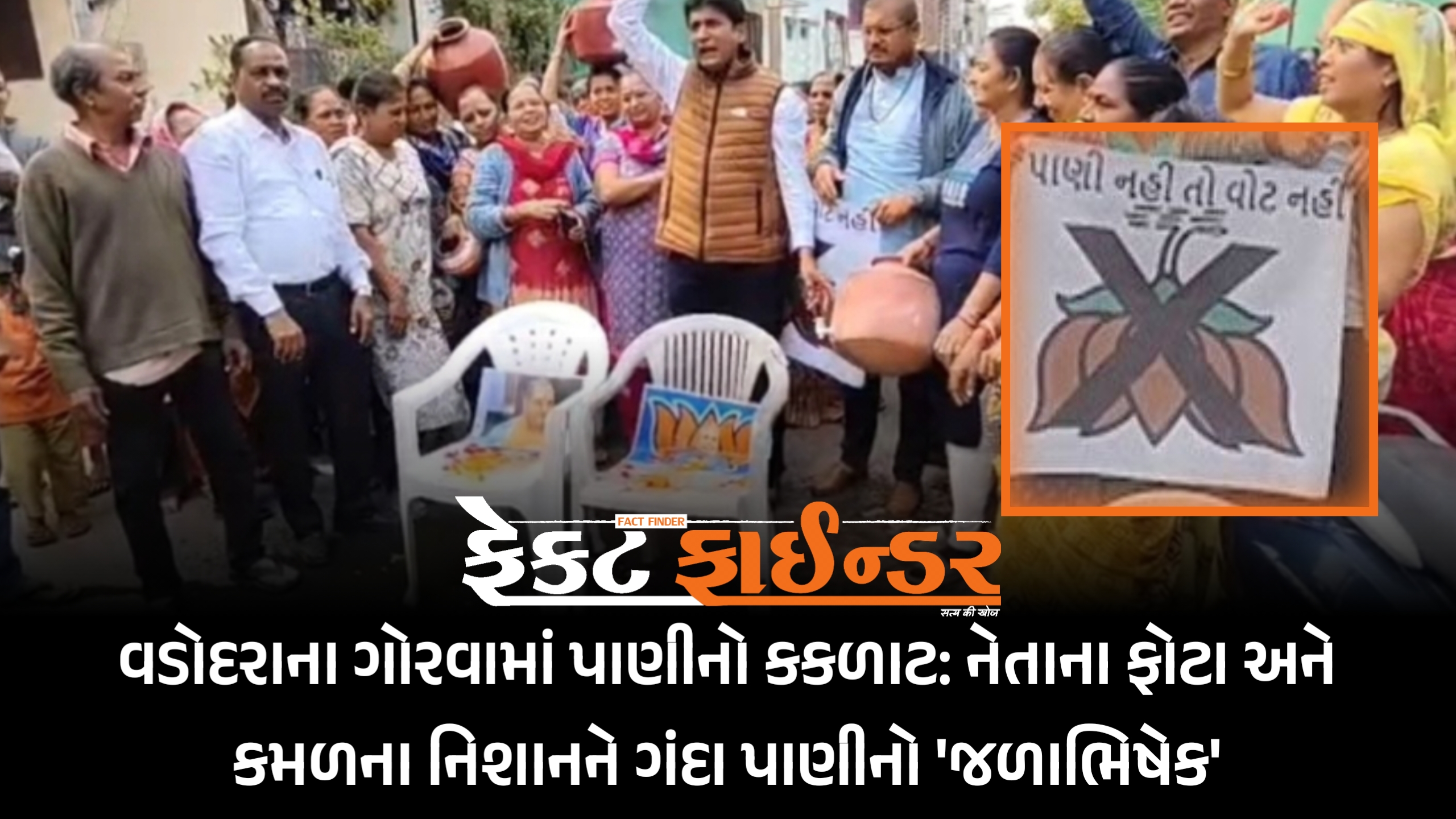 વડોદરાના ગોરવામાં પાણીનો કકળાટ: નેતાના ફોટા અને કમળના નિશાનને ગંદા પાણીનો ‘જળાભિષેક’