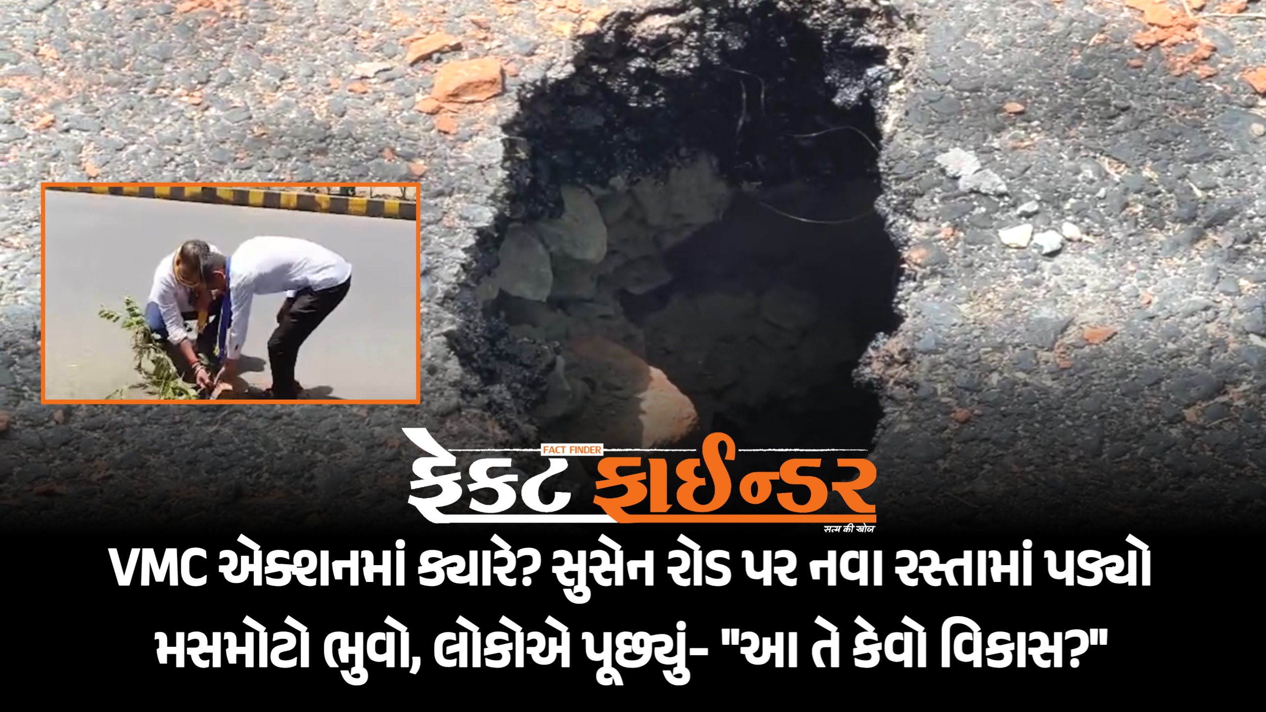 VMC એક્શનમાં ક્યારે? સુસેન રોડ પર નવા રસ્તામાં પડ્યો મસમોટો ભુવો, લોકોએ પૂછ્યું- “આ તે કેવો વિકાસ?”