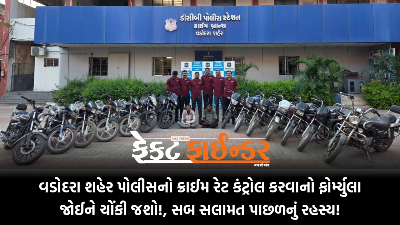 વડોદરા ક્રાઈમ બ્રાન્ચે શહેર ભરમાં મોટરસાયકલ ચોરી કરનાર બે વાહનચોરોને ઝડપી પાડીને 14 જેટલી ચોરીની મોટરસાયકલ કબજે લીધી છે. જયારે શહેરના 14 જેટલા વાહનચોરીના ગુન્હાને ડિટેકટ કર્યા છે. આ સમાચાર મળે એટલે એમ થાય કે પોલીસ તંત્ર કેટલું સરસ કામ કરે છે. 14 મોટરસાયકલ ચોરીનો ભેદ ઉકેલીને પોલીસે વાહનચોરને ઝડપી પાડીને પ્રસંસીનીય કામગીરી કરી છે! જોકે આવા ગુન્હાઓ શોધાય છે તે નિયત સમયે નોંધાતા કેમ નથી?